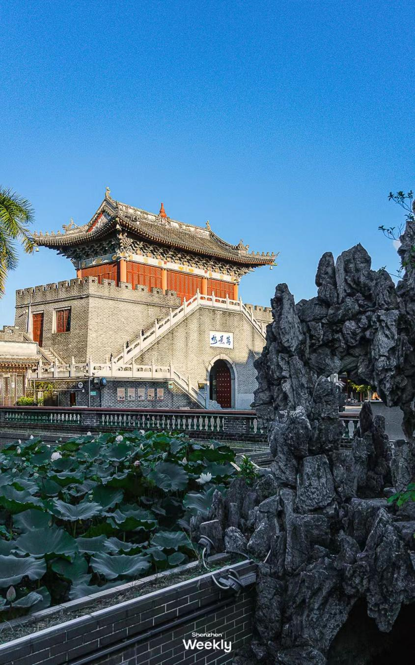 沙井古墟からご案内します。ここは約26万平方メートルの面積を誇り、歴史と文化が融合した深センで最も保存状態の良い歴史的保護地区の一つです。この地域には、清朝(1644-1911)末期の多くの古い住宅が残っており、さまざまな門楼、古井、遺物、遺跡があります。例えば、龍津石塔、現在も使用されている六角形の『囲頭井』、有名な天后宮、そして水にとても近い龍津水榭などがあります。