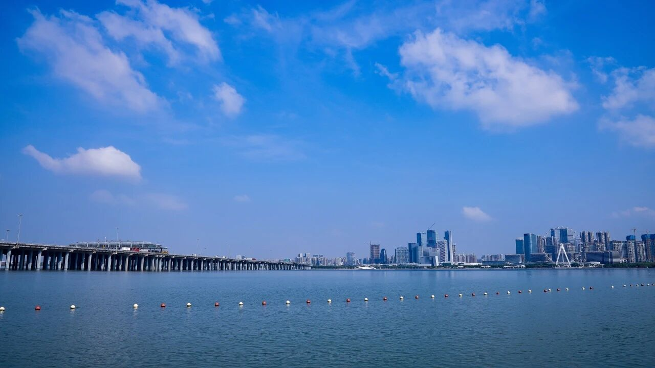 前海の紺碧の空と青い海。写真は深セン市海洋発展局より
